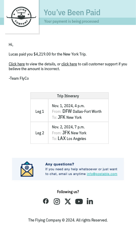 We will be improving the email templates shortly. These new templates will include greater detail on the itinerary so that pilots can determine their suitability without necessarily needing to enter the Flying Company platform first.